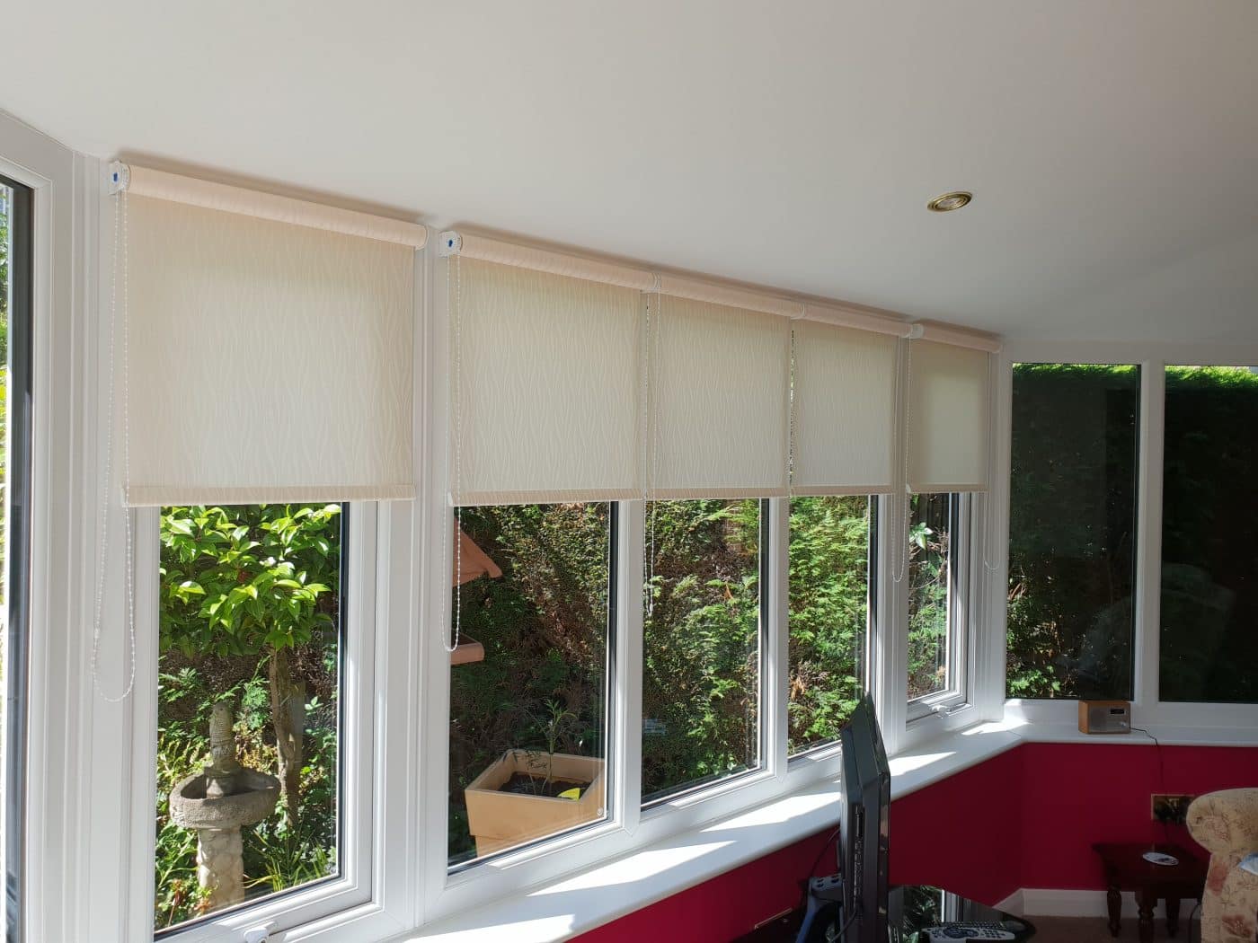 • Roman blinds: Roman blinds add a touch of luxury to any conservatory. They are made from soft fabric and fold up neatly when not in use.